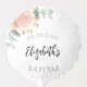 A chic white background decorated with a rose gold, blush flower, rose and eucalyptus greenery. Personalize and add a date and name. The name is written with a modern hand lettered style script. Perfect as party decorations and as table setting. Black text.