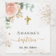 Personalize and add a name and the date. A chic white background. Decorated with a watercolored rose gold and blush pink rose and green eucalyptus leaves, sprigs, greenery, faux gold leaves. A faux gold cross. For the baptism reception, luncheon and as gift for the priest.