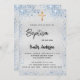 Baptism silver blue boy gold cross sparkles script invitation