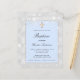 Faux silver and light blue colored background decorated with faux silver glitter dust. Personalize and add a name and the details. Black colored letters.