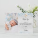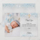 A modern and elegant baptism thank you card. A faux silver metallic looking background decorated with blue faux glitter dust. Personalize and add your photo of the child, thank you note and name.