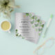A modern, elegant baptism invitation, gender neutral. Faux silver metallic looking background decorated with eucalyptus greenery, sprigs. Personalize and add a name and details. Black colored letters.