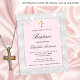 Faux silver metallic and blush pink colored background decorated with faux silver glitter dust. Personalize and add a name and the details. Black colored letters.