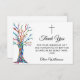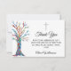 This stylish Baptism Thank You Card features a tree of life design in the colors of the rainbow and a cross.