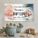 Cute baptism welcome sign with the kids' photo collage. Personalize the text to congratulate the boy or girl. To change the photo placement: click on the button to edit the design, click on "crop", and move the image.