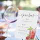 With the text: Open bar. Personalize and add your bar menu. Decorated with a red drink.