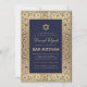 Bar Mitzvah Elegant Navy Blue Vintage Gold Roses Invitation