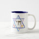 A teen's artwork decorates this colorful bar mitzvah keepsake mug. Just replace our sample name and date for your own for a perfect memento or party favor.