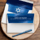 When you send out this cool, unique, modern, personalized coordinating Bar Mitzvah invitation envelope you’ll definitely stand out in the daily mail. The outside back flap of this white and navy blue envelope boasts bold, white typography overlaying faux metallic light blue brush strokes overlaying a rich, navy blue ombre background. The inside lining finds a surprise, graphic visual of a bold, white Star of David overlaying more metallic light blue brush strokes on navy blue. Personalize the return address with your Bar Mitzvah’s information. Matching and coordinating invites, thank you notes, banners, stickers and other Bar Mitzvah goodies are also available in this trendy and special collection.