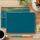 When you send out this cool, unique, modern, personalized coordinating Bar Mitzvah invitation envelope you’ll definitely stand out in the daily mail. The outside back flap of this teal blue envelope boasts bold, white typography overlaying faux metallic gold brush strokes and a rich, turquoise blue ombre paint background. The inside lining finds a surprise, graphic visual of a bold, faux gold foil Star of David overlaying more metallic gold brush strokes on turquoise blue ombre. Personalize the return address with your Bar Mitzvah’s information. Matching and coordinating invites, thank you notes, banners, stickers and other Bar Mitzvah goodies are also available in this trendy and special collection.