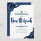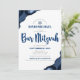 Bar Mitzvah Modern Simple Navy Blue Agate Script Invitation