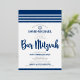 Be proud, rejoice and showcase this milestone of your favorite Bar Mitzvah! Send out this cool, unique, modern, personalized invitation for an event to remember. Bold, navy blue script typography, real foil Star of David and a navy blue and real foil silver striped tallit inspired graphic overlay a simple, white background. Personalize the custom text with your Bar Mitzvah’s name, Hebrew name in real silver foil, date, and venue information. Guaranteed to add stylish fun to his special occasion!