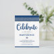 Be proud, rejoice and showcase this milestone of your favorite Bar Mitzvah! Include this cool, unique, modern, personalized insert for additional information to your event. Bold, navy blue script typography, Star of David and a navy blue and silver glitter striped tallit inspired graphic overlay a simple, white background. Personalize the custom text with your Bar Mitzvah’s name, date, and venue information. Guaranteed to add stylish fun to his special occasion!