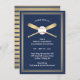 Compliment navy blue and gold birthday party or bar mitzvah invitations with elegant baseball theme reception enclosure cards. All text is simple to customize or delete as needed. Card includes any celebration details of your choice such as party location, date, time, website, hosts names, etc. Design features faux foil baseball bats, classic art deco inspired typography, and a navy blue, gold & white border. Please note that gold is printed color, not metallic foil.