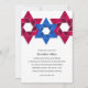 Plain white envelopes are included with paper invitations and will come to fit the invitation size you select. If you don’t need the envelopes, you may choose to not receive them by selecting the dropdown below "Envelopes" and choosing "None." If you’d like to have a design on your envelopes, you can browse all of these available envelopes to find the design that complements your Bar Mitzvah Red White Blue Star Of David Invitation.