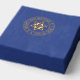 Bar mitzvah foil napkins featuring a Star of David with the boy's monogram initial, and name and date around the star.