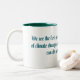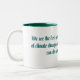 A striking two-tone mug featuring Barack Obama's powerful climate change quote. Bold teal typography on a clean white exterior with deep green interior. A meaningful gift for environmentalists, activists and anyone who believes we must act now to protect our planet.