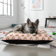 My dog instantly fell in love with this bed. It's super soft and plush. She hasn't stopped laying on it and even when I move it, she jumps on it and gets moved with it. The removable cover is easy to take off and wash. Highly recommend this and it makes a great gift. Fanstastic printing. The colors are 100% accurate and bold.