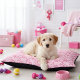 My dog instantly fell in love with this bed. It's super soft and plush. She hasn't stopped laying on it and even when I move it, she jumps on it and gets moved with it. The removable cover is easy to take off and wash. Highly recommend this and it makes a great gift. Fanstastic printing. The colors are 100% accurate and bold.