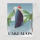 Barbados Cruise travel poster with a ocean liner and palm trees.