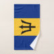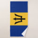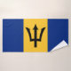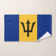 The Barbados flag is a vertical tricolour with in the center an emblem. The used colors in the flag are blue, yellow, black. The proportion of the Barbados flag is 2:3. The Flag of Barbados was adopted in 1966.