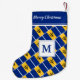 Stylish CHRISTMAS STOCKING showing the flag of BARBADOS in a tiled pattern. At the centre there is a MONOGRAM which is CUSTOMIZABLE, so you can add your own initial. At the top there is a placeholder greeting which is also customizable so you can add a name or greeting. Front and back are the same. Matching home decor, cards and gifts are available in the BARBADOS Collection.