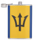 The yellow ór gold and blue flag of Barbados on a large flask fills the entire printable space here. Great gift for your favorite Bajan. Fun for travelers, too.