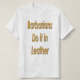 A play on role playing games like D&D, Runequest or Pathfinder that Barbarians do it in leather, what ever they do. Written in sand coloured letters.