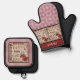 This fun kitchen pot holder and oven mitt set is a wonderful gift for Dad for Father's Day! It features a square with a barbecue grill and condiments in it along with typography including steak, barbecue, tomatoes, lamb, marinade, vegetables and more. Background is red and white gingham check and the top of the oven mitt has a solid red panel with a black border for you to personalize with your Chefs name. There's also two different towels, and a matching apron in our shop to complete the set.