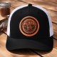 Custom Leather Patch Hat, Sytle: Adult Retro Trucker Cap, Color: Heather / Black, Shape: Circle