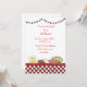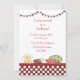 Barbecue or picnic invitation with red and white checkered border, picnic food and bunting flags. Perfect for summer parties or family reunions. Easy to customize and comes complete with envelopes and your choice of paper.