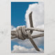 Barbed wire with blue cloudy sky behind it