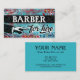 Colorful arty Barber business cards in turquoise, aqua, red, yellow. Barber for hire business cards.