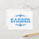 Show others what line of business you're in with this shiny blue design with flourishes and the word Barber. Great gift for barbers.