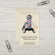 A custom design of a barber shop pole with a razor, scissors and a man's mustache. This business card can be used by a barber or barber shop. Easy to edit. Background is tan.