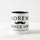 Barber shop coffee mug with pole sign and mustache. Classic red and blue barber shop pole drawing for men's hair salon. Stylish company cup for hair stylist. Make your own trendy barbershop mug for hot drinks.