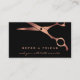 Barber Shop Hairdresser Black Copper Referral Card. This collection designed to give you the tools you need to start your business, it includes items with black background and copper scissors. With a service list, welcome sign, referral card and more matching items this pack includes everything you need to entice new customers and reward loyal ones.