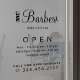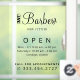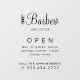 Trendy modern elegant barber hairstylist barbershop name men salon opening hours signage window cling with black bold typography script with scissors and pole. ++++++++++++ Suitable for barber shop, men salon, professional hairstylist. +++++++++++++++++++++ Easy to personalize with your salon or stylist name, call for appointments phone no, and your text.