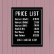 Acrylic price-list for a hairdresser or barber shop. Alter prices as you wish. Displays up to 9 items and prices. Black and white.