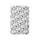 A black and white pattern of tools and icons from a classic barber's shop. A barbers pole, straight razor, comb, scissors and safety razor blade.