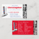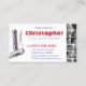 This is a CUSTOMIZABLE barbershop business card design. The design is represented by barbershop colors of blue and red. All artwork was created and illustrated by Adrian Arthur of whizcreations.net.