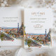 Get your guests excited about your upcoming wedding in Barcelona with this stunning Save The Date card featuring a beautiful watercolor artwork of the city's iconic Park Guell. Barcelona, known for its stunning architecture and rich history, is the perfect destination for a wedding. The city is particularly famous for its unique and colorful art nouveau architecture, with Antoni Gaudi's masterpieces such as the Sagrada Familia, Casa Batllo, and La Pedrera.