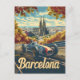 A unique vintage design featuring the iconic Sagrada Familia in Barcelona, beautifully juxtaposed with a classic racing car. The artwork blends the grandeur of Antoni Gaudí's architectural masterpiece with the sleek elegance of retro automotive design, creating a captivating scene that highlights the city's rich cultural heritage and dynamic spirit.