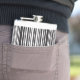 A hip flask with a bar code with "Need to Escape" in leetspeak below. Also known as leet, 1337 or eleet, it uses numbers to replace alphabets, used primarily on the internet. The term came from the word "elite".