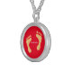 I chose gold plated so that the metal would not react with my skin oils and perspiration. But, I changed the necklace from the gold plated one to a sterling silver. My skin cells will tarnish the silver. But it will not look as bad if some portion of the gold plated necklace somehow became compromised. Zazzle did a find job turning the picture into a pendant for me. As you can see, the colors and the printing of the final product, match the preview. The picture I took is not very clear. But I am pleased with the product I received.