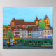 A Colourful stylized painting scene of the popular Barfüsserplatz in the city centre of Basel, Switzerland by popular artist Lisa Lorenz. Poster prints now available, any size within this aspect Ratio.