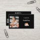 A classic black background. Personalize and add your photo, title, business name/name and text on front. White text. Decorated with a coffee cup