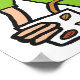 Barista design shows the barista carefully pouring hot coffee into a mug. Wears bow tie, smiling coffee bean logo and delivers the morning coffee wake up call for the customer.