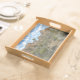 This is a well made, sturdy wooden tray with a flawless black finish and lovely map on the tray surface. It is both vintage & modern at the same time. Looks exactly like the photo; does not disappoint. So nice to find something of quality individually made and not the mass-produced 'shabby chic' merchandise seen in stores. I am so pleased to be able to give this to my college-age niece for her birthday. This can be used as a tray to hold jewelry or toiletries, or hung on the wall as art. The map surface is sealed (it is slightly shiny) so would be moisture resistant. It is well worth the asking price but I was able to apply a sale code as well. Very happy with my purchase. Map is crisp & clear and sealed with a water-resitant finish.