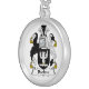 I chose gold plated so that the metal would not react with my skin oils and perspiration. But, I changed the necklace from the gold plated one to a sterling silver. My skin cells will tarnish the silver. But it will not look as bad if some portion of the gold plated necklace somehow became compromised. Zazzle did a find job turning the picture into a pendant for me. As you can see, the colors and the printing of the final product, match the preview. The picture I took is not very clear. But I am pleased with the product I received.
